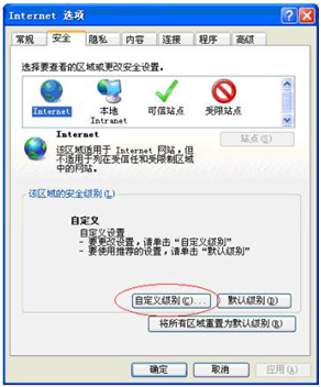 ?、谌绻麩o法下載或仍顯示紅X,則于瀏覽器——工具——internet選項——安全——自定義級別,如下圖: