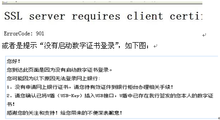 在網(wǎng)銀登錄界面點擊登錄,顯示客戶端證書無效或者數(shù)字簽名錯誤。